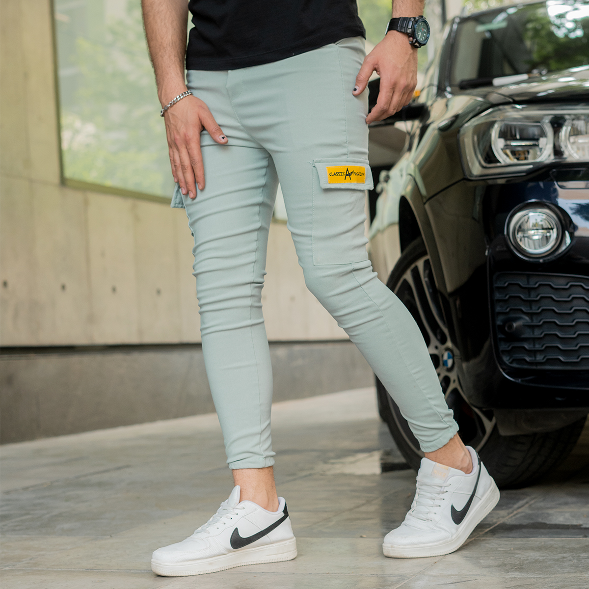 شلوار اسلش بنددار سبز کمرنگ چهارجیب مدل 68