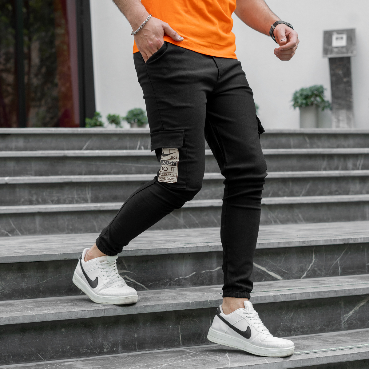 شلوار اسلش بنددار مشکی چهارجیب مدل 68