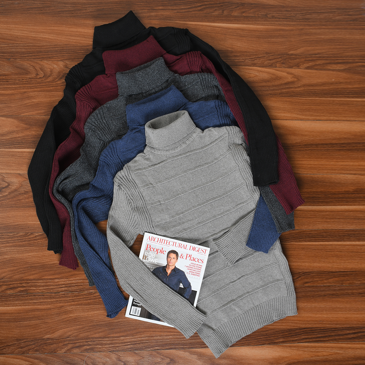 پلیور یقه اسکی کرم طرح کرکره ای مردانه مدلR10